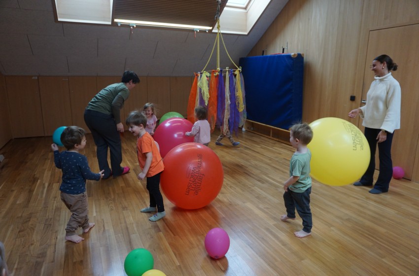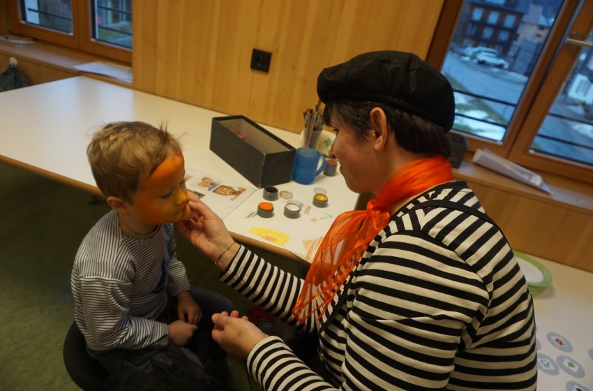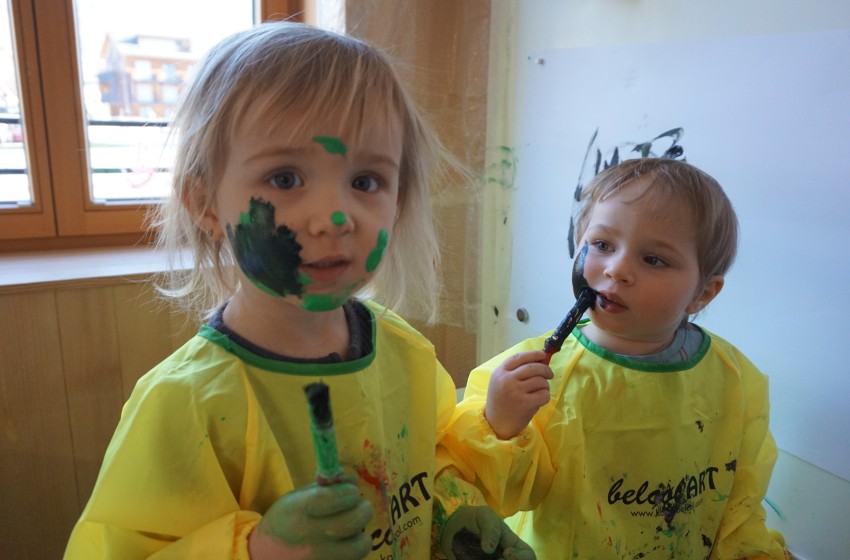 Auch die Malwand wurde den Kindern wieder zur Verfügung gestellt, wobei sie ihrer Kreativität mit Farben und Pinsel freien Lauf lassen konnten. Im ersten Stock wurden zudem Igelball-Bilder gezaubert, und im oberen Stockwerk bereits Osterküken gebastelt. Der untere Stock bastelte zu Ostern niedliche Osterhasen, welche sie mit Watte bekleben konnten.