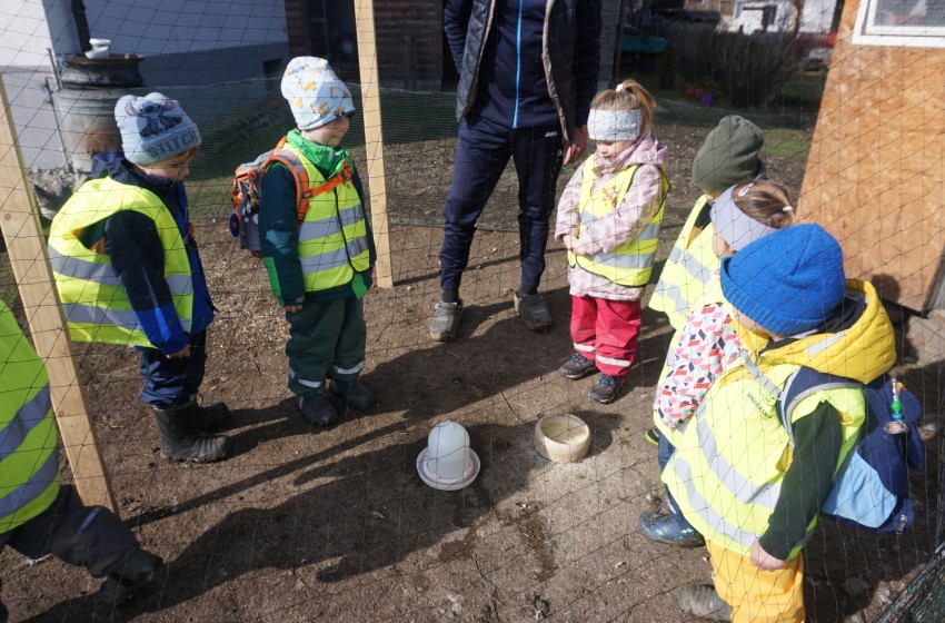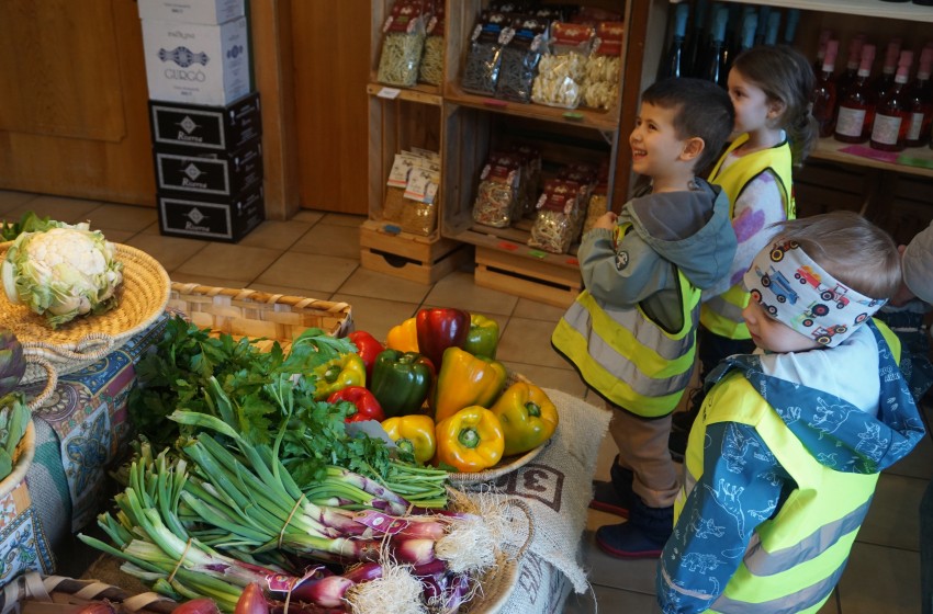 Aber auch an den Erlebnistagen wurde es den Kindern nicht langweilig. Sie suchten beispielsweise Müll von den Feldern und sammelten diesen ein. Dadurch lernen sie schon von klein auf keinen Müll in der Umwelt zu hinterlassen bzw. diesen immer richtig wegzuwerfen und nicht liegen zu lassen. Ein Highlight an den Erlebnistagen war sicher auch der Besuch eines Hühnerstalls bei einem Kind zuhause. Wir durften einige Eier einsammeln, welche wir für die Osterwoche kochten und uns schmecken ließen. Am Nachmittag gingen wir öfters einkaufen, unter anderem auch in den italienischen Laden.