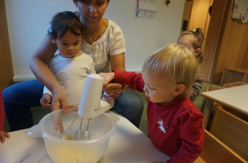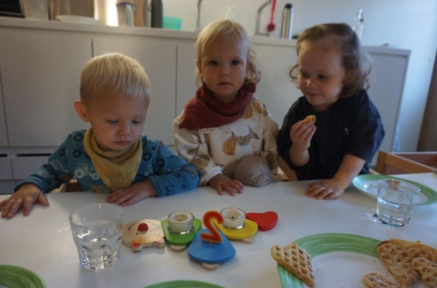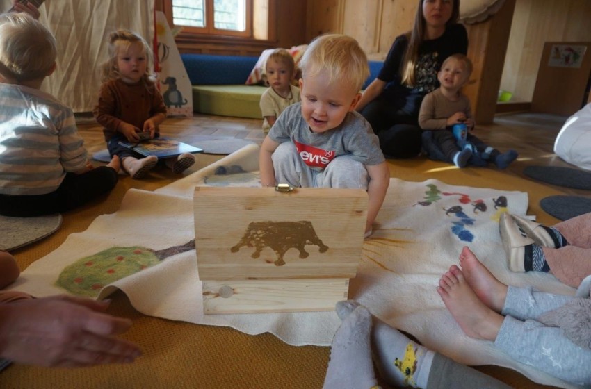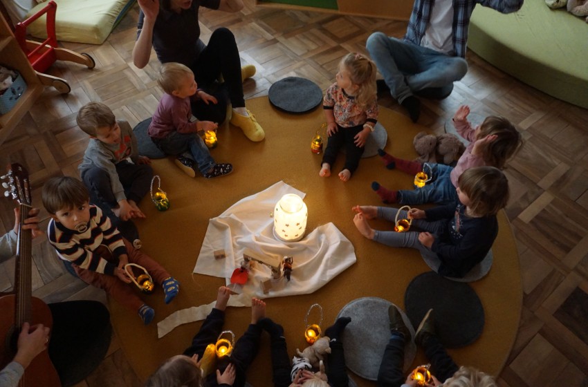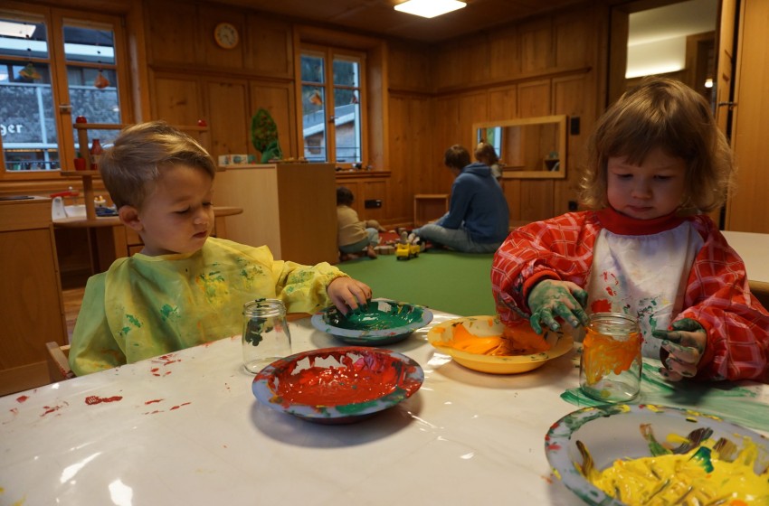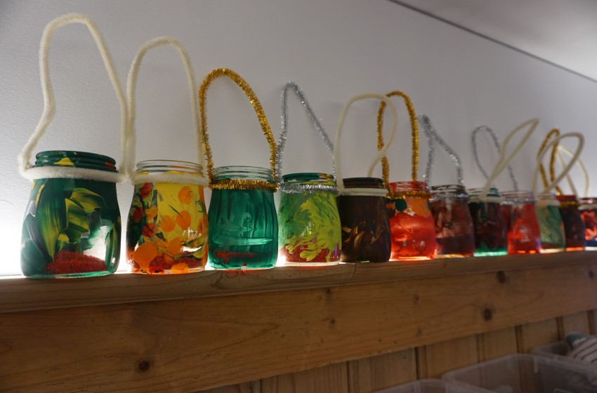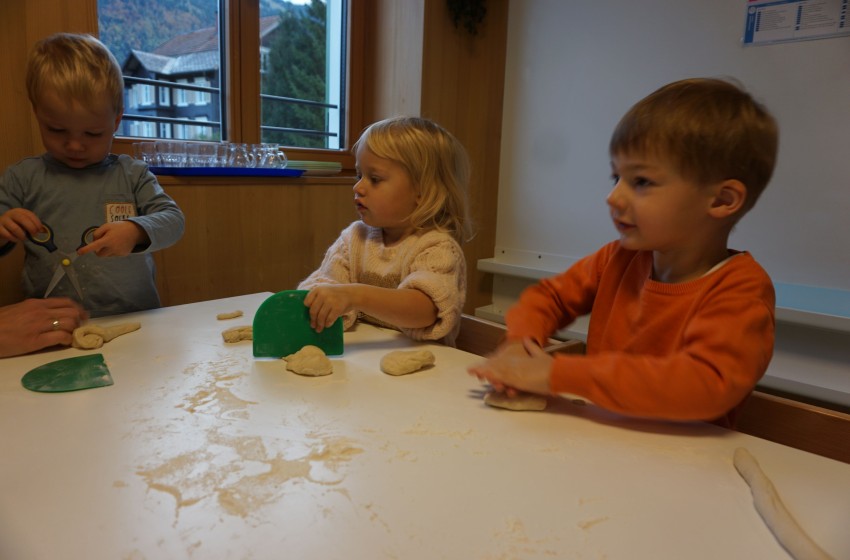 In den zwei Wochen vor St. Martin haben wir in der Spielgruppe Vorbereitungen getroffen. Wer Lust zum Ausprobieren hatte, konnte die Laternengläser mit den Fingerfarben anmalen. Das war schon spannend, die einen Kinder malten gerne mit den Fingern und Andere wiederum nur mit dem Pinsel. Als wir genug Gläser für das Haus hatten, wurden sie von den Kindern gefüllt, mit buntem Sand und einem Licht dazu. Dann in der Woche vom St. Martin haben die Kinder ihre Brötchen in ihrer Kreativität geformt und ab ging es in den Backofen. Zwischenzeitlich haben wir beim Morgen- und Nachmittagskreis die Geschichte vom St. Martin mit Figuren angeschaut, das Laternenlied gesungen und dann haben wir bei unserer gemeinsamen Jause das Brot geteilt und miteinander gegessen.